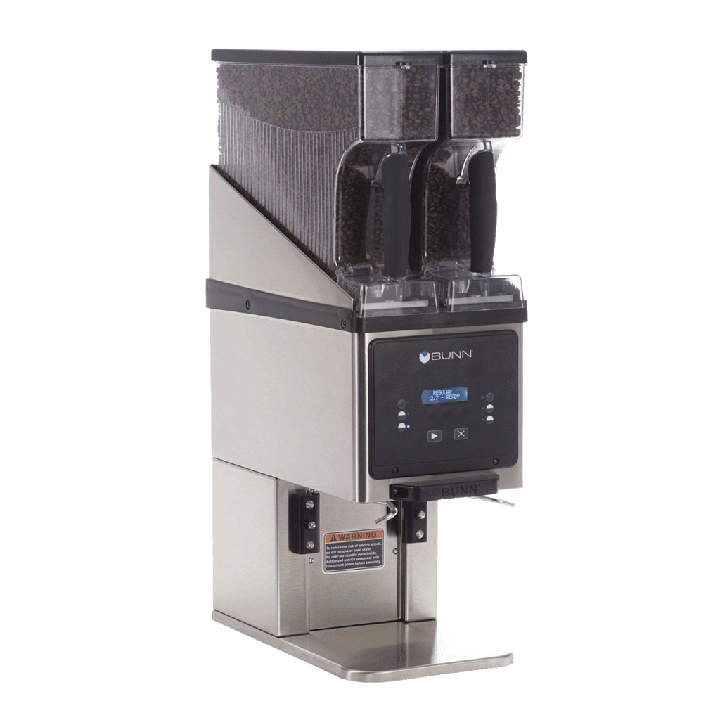 Bunn MHG A är en professionell kaffekvarn och förvaringslösning för verksamheter som vill arbeta med två olika sorters hela bönor till kaffebryggare i samma enhet. De två avtagbara, frontmatade bönfacken rymmer 2,722 kg vardera och är byggda för snabba byten, enkel påfyllning och smidigare rengöring i daglig drift. Just de dubbla bönfacken är kärnan i modellen och gör den särskilt intressant när du vill kunna växla mellan två kaffeprofiler utan att kompromissa med arbetsflödet.