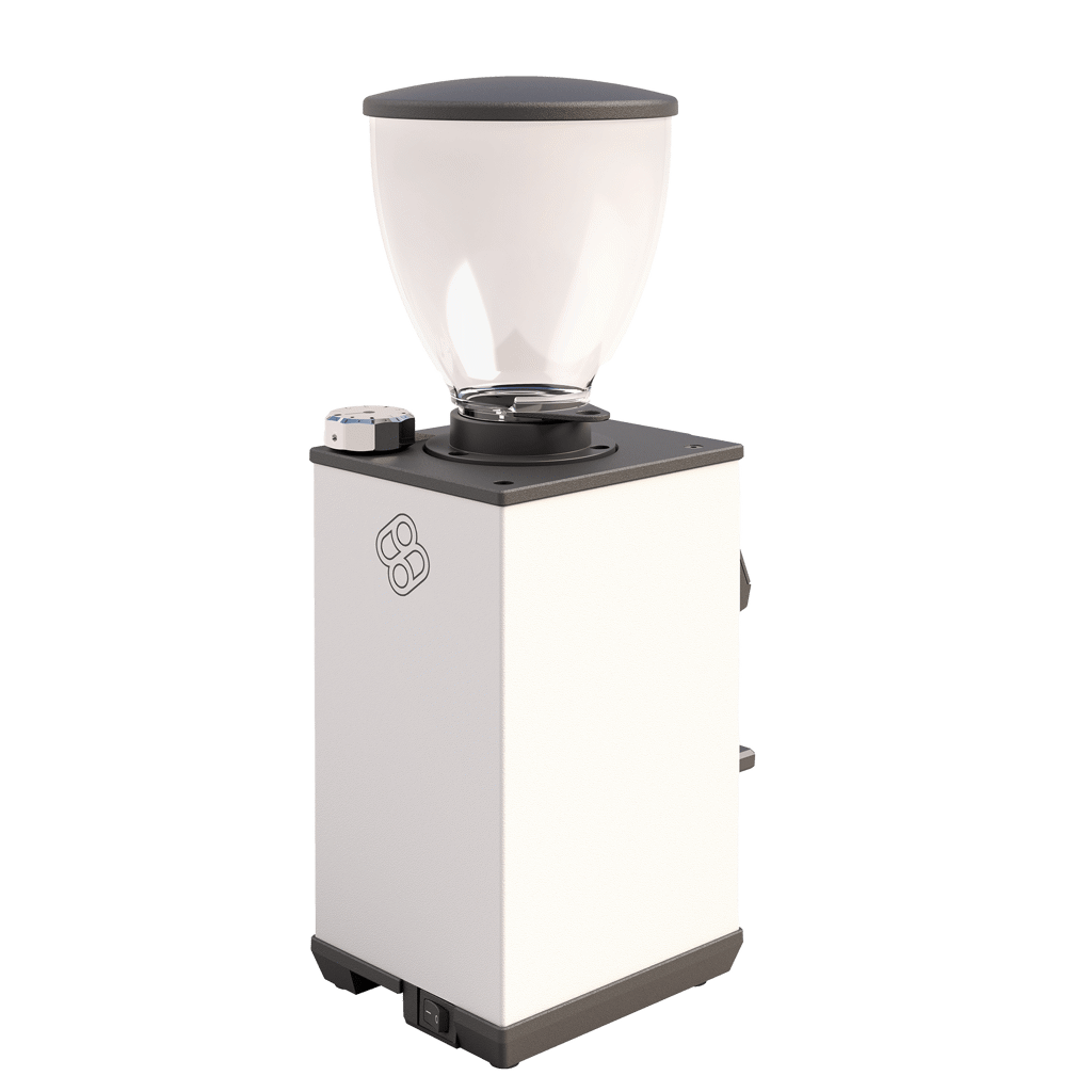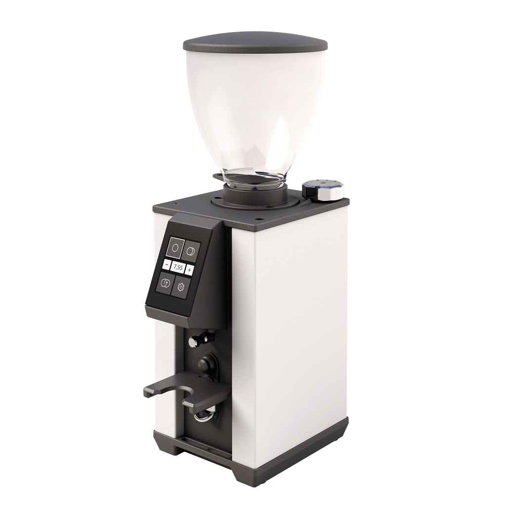 Macap LEO55 Touch i vit (Satin White) är en kompakt premiumkvarn som kombinerar modern design med professionella funktioner. De 55 mm platta skivorna och den steglösa justeringen gör det möjligt att ställa in exakt malningsgrad för espresso och andra bryggmetoder. Malhastigheten på 1,8–2,2 g/s ger både snabbhet och precision.