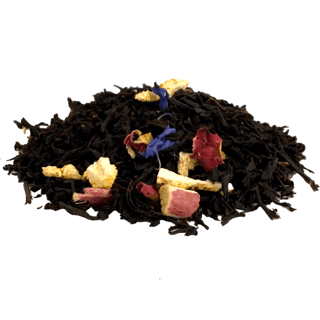Ingredienser: Svart te (92%), apelsinskal (5%), rosenblad (0,5%), blåklint (0,2%), solrosblommor (0,2%), frystorkade rabarberbitar (0,3%) och arom
