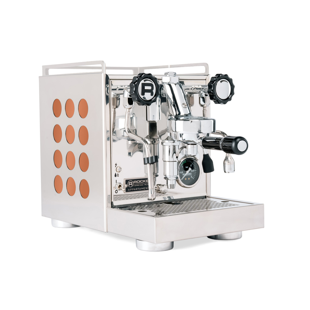 Appartamento 2.0 Copper är en handbyggd espressomaskin från Milano, utvecklad för hemmabaristor som kräver stabilitet, styrka och estetik i ett kompakt format. Kombinationen av E61-brygghuvud och värmeväxlare ger konsekvent temperatur och direkt tillgång till kraftfull ånga för mjölktexturering.