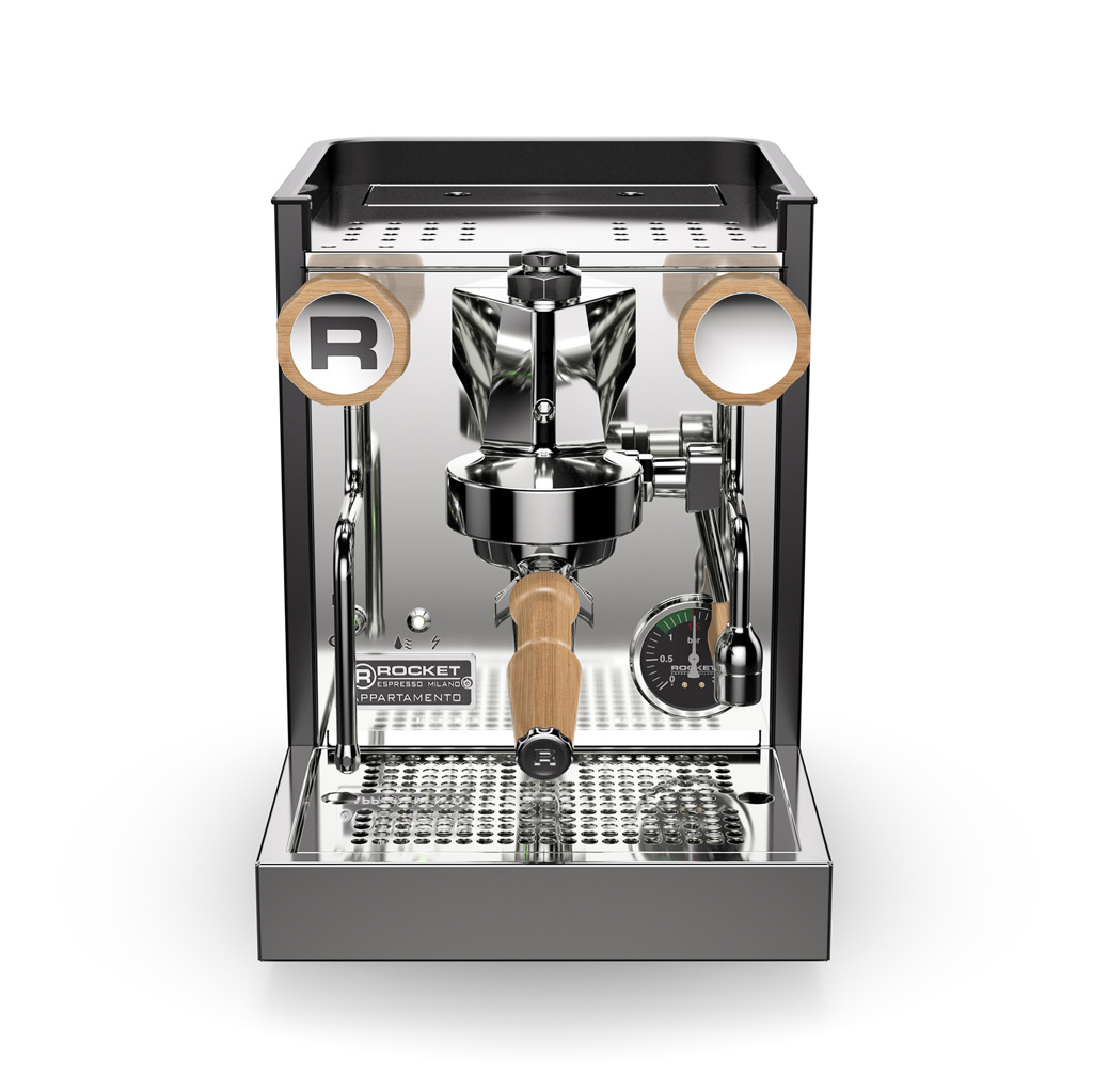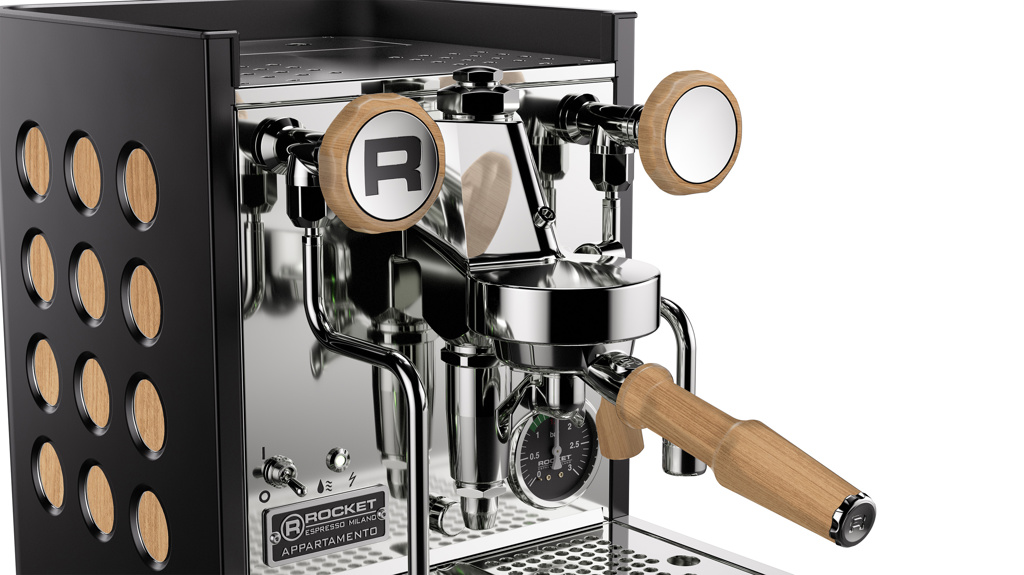 Utförandet i svart med sidopaneler och reglage i massiv ek ger maskinen en tydligt lyxig karaktär där naturligt trä möter teknisk precision. De försänkta sidoringarna, den vertikala Rocket-logotypen och den omarbetade bryggruppen skapar ett distinkt uttryck som gör Appartamento TCA till ett självklart fokus i ett premiumkök. Maskinen är avsedd för krävande hemmabaristor och finsmakare som prioriterar material, kontroll och långsiktig byggkvalitet.