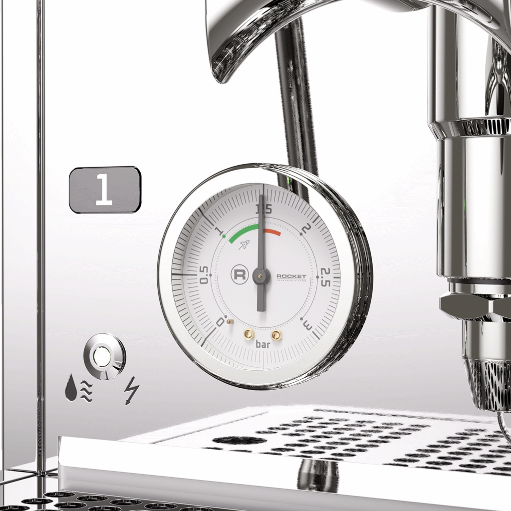 Giotto R Fast är en del av Rockets nya Fast-serie som ersätter Cronometro-modellerna. Serien kännetecknas av tystare drift, robust rostfri konstruktion och dubbla tryckmätare för full kontroll över pump och kokare. Maskinen är dessutom utrustad med energisparläge och justerbar RGB-belysning.