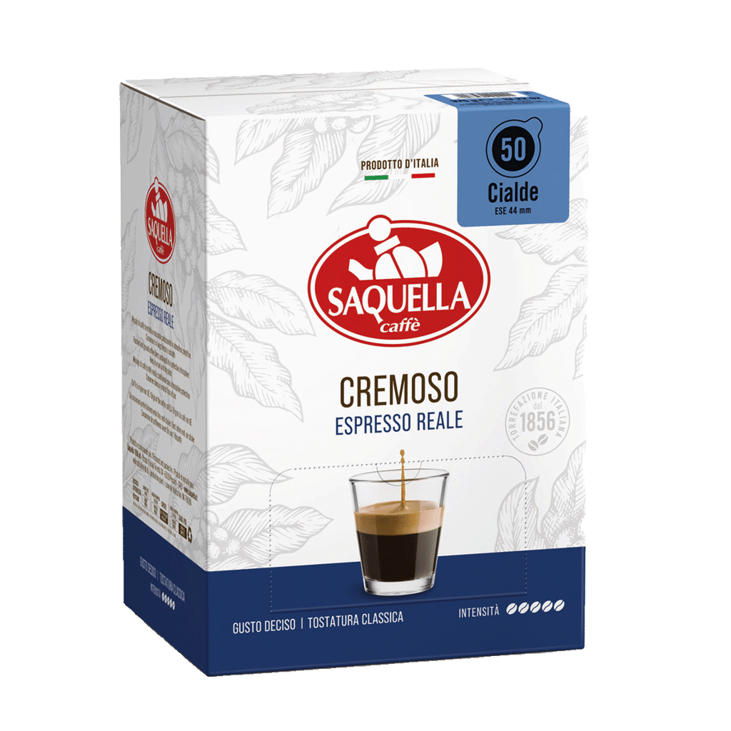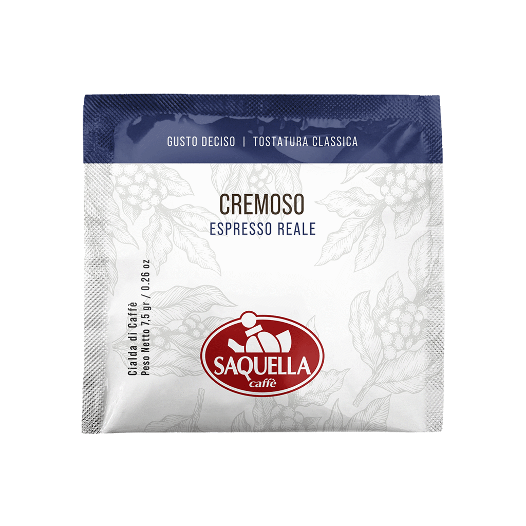 Saquella Cremoso Espresso Reale Cialda är framtagen för att leverera en mjuk och fyllig espresso med tydligt fokus på crema. Blandningen av Arabica och Robusta är balanserad för att ge rund smak och hög krämighet utan bitter avslutning. E.S.E. kaffepods-formatet säkerställer korrekt dosering och jämn extraktion vid varje bryggning.